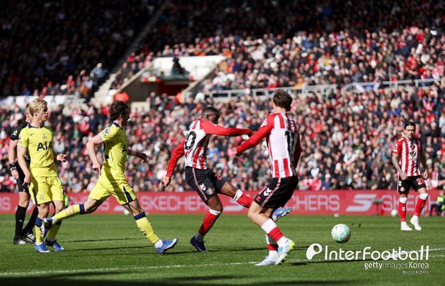 후반전 들어 선덜랜드가 선제골을 넣었다. 후반 15분 노르디 무키엘레의 왼발 중거리 슈팅이 반 더 벤 맞고 토트넘 골문으로 들어갔다.