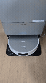 가장 감탄한 지점은 가장자리 청소다. 둥근 로봇청소기의 고질적 약점인 모서리를 만나면 '플렉시암'이라 불리는 사이드 브러시와 확장형 물걸레가 옆으로 툭 튀어나온다. 마치 사람이 손을 뻗어 구석을 훔치는 듯한 이 동작 덕분에 사각지대 먼지까지 야무지게 잡아냈다.