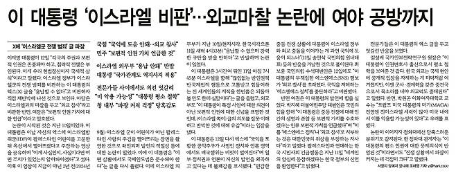 이재명 대통령이 소셜미디어 X에 이스라엘군을 규탄하는 글을 쓴 후 정치권 공방이 사흘간 이어졌다.