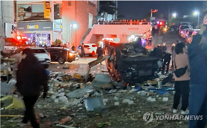 사고 직후 현장 일대에 각종 파편이 쏟아지고 놀라서 대피한 주민들이 뒤섞이면서 아수라장이 됐다.
