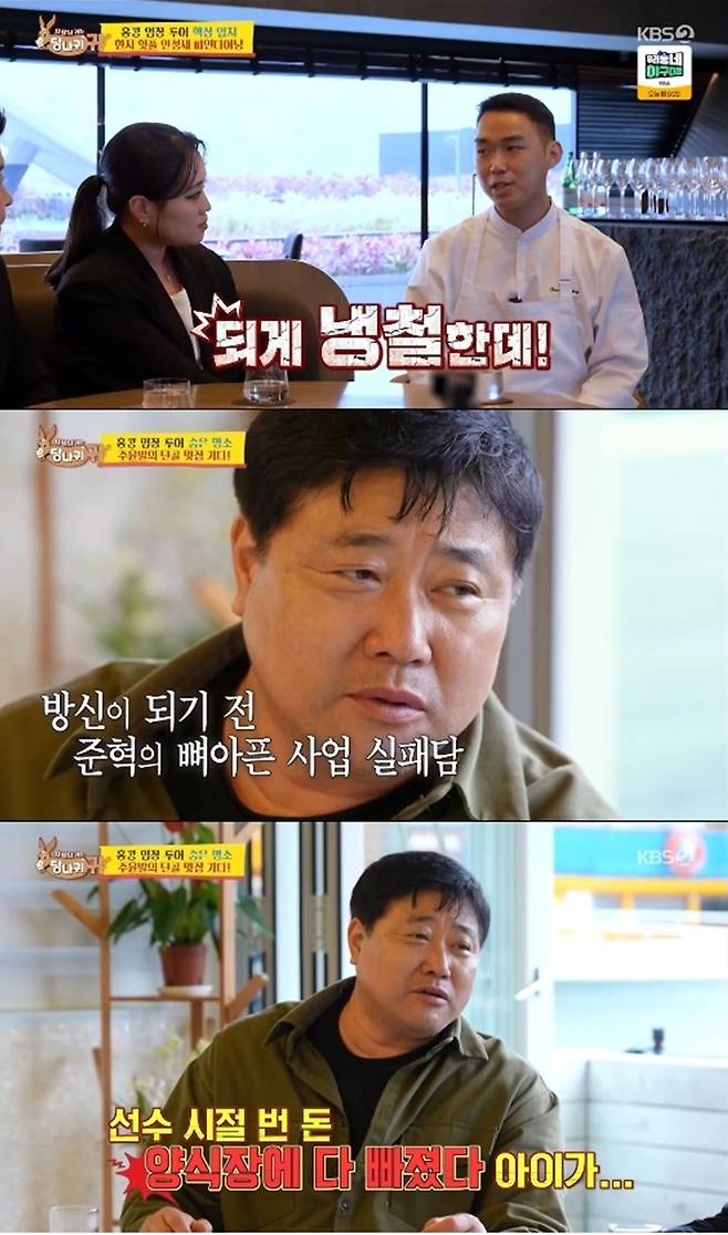 양준혁은 해산물 요리를 먹으면서 과거 우럭, 전복, 광어 등 양식장 사업을 하다가 50억 손해 본 얘기를 했다.