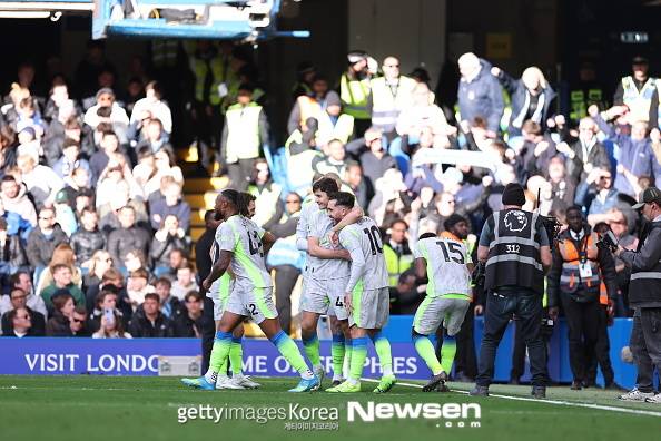 맨체스터 시티는 4월 13일(이하 한국시간) 영국 런던 스탬포드 브릿지에서 열린 첼시와의 '2025-2026 잉글랜드 프리미어리그' 32라운드 경기에서 3-0으로 대승했다.