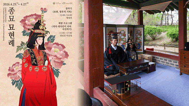 국가유산청 궁능유적본부와 국가유산진흥원은 오는 25일부터 사흘 동안 서울 종묘 영녕전에서 ‘종묘 묘현례’ 행사를 재구성한 창작 뮤지컬 ‘묘현, 왕후의 기록’을 선보인다고 오늘(13일) 밝혔습니다.
