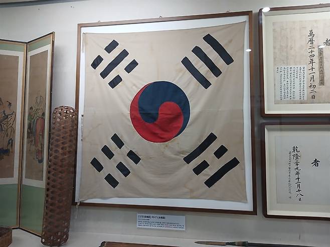 | ▲ 박물관에 전시된 선교장 태극기 |