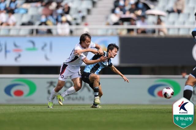 12일 오후 2시, 천안종합운동장에서 하나은행 K리그2 2026 7라운드 천안시티 FC(이하 천안)-충북청주 FC(이하 충북충주)전이 킥오프했다. 두 팀은 난타전 끝에 2-2로 비겼다. 홈팀 천안에선 후반 9분 사르자니, 후반 34분 이준호가 각각 한 골을 넣었다. 충북청주에선 전반 48+4‧후반 12분 이종언이 연속으로 골을 터뜨렸다.