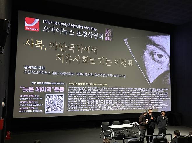 한편, 이번 초청 상영은 자발적으로 구성된 '시민상영위원회'가 지난해 10월부터 상영을 시작해 앞으로 100회 목표로 하고 있다. 시민상영위원회와 뜻을 함께하는 시민은 정선지역사회연구소 '늦은메아리운동' 앞으로 후원할 수 있다(농협 301-0284-9808-31).
