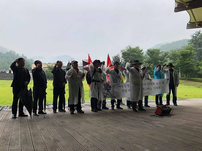 | ▲ 2019년 8월 사북항쟁특별위원회가 사북항쟁 명예회복을 염원하는 사북에서 청와대까지 도보행진 출정식을 하고 있다. |