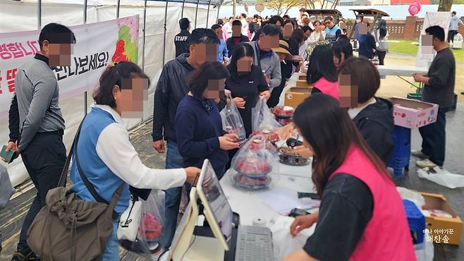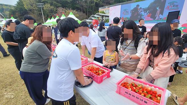 학교 운동장에서 벌어진 진주 딸기축제