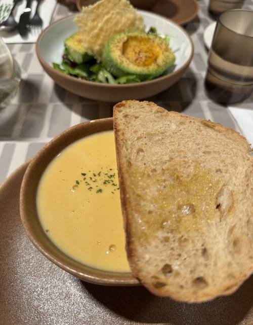 닥터로빈의 정체성을 상징하는 대표 메뉴는 바로 단호박 콩크림 스프. 콩을 갈아 만든 콩크림 소스를 담은 깊은 풍미의 저당 단호박 수프이다. 그 외에도 저당 오렌지 드레싱에 아보카도가 통으로 들어간 아보카도 샐러드, 미소된장을 소스로 이용한 감칠맛 터지는 미소된장크림 파스타 등 모든 메뉴가 자극적이지 않으면서도 재료 고유의 풍미가 살아있어 먹을수록 몸이 가벼워지는 기분을 선사한다.
