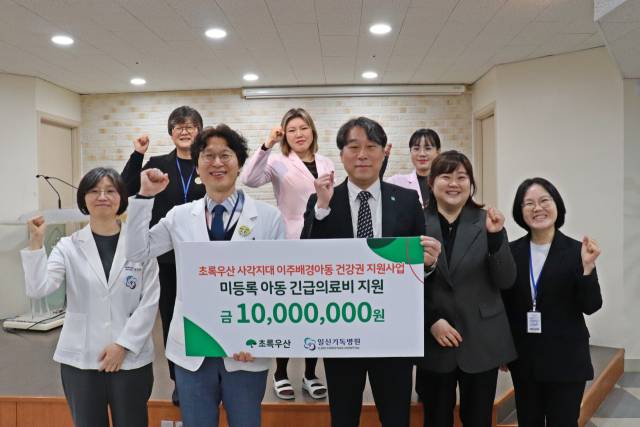 초록우산(부산지역본부장 조유진)은 지난 9일 일신기독병원에 미등록 쌍둥이 이주배경아동의 긴급 의료비 지원을 위한 후원금 1000만 원을 전달했다.