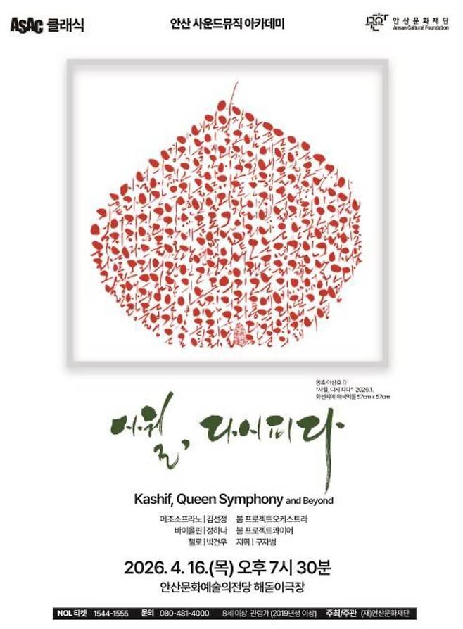 안산문화재단은 세월호 참사 12주기인 오는 16일 안산문화예술의전당 해돋이극장 무대에 2026 ASAC 클래식 프로젝트 '안산 사운드뮤직아카데미'의 첫 공연 봄 음악회 '사월, 다시 피다'를 올린다.
