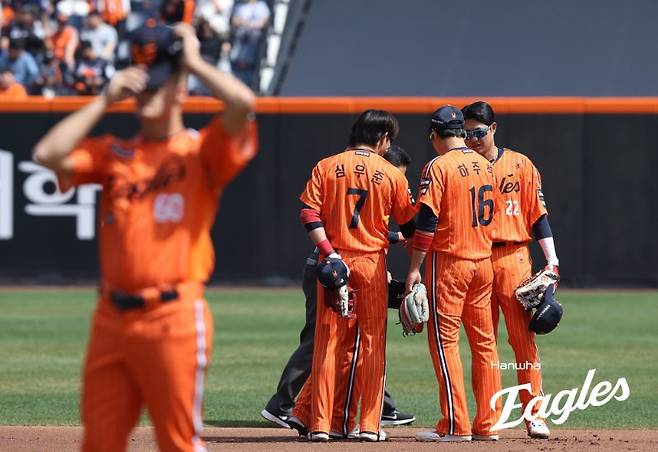 그나마 조동욱이 8경기에서 3홀드 평균자책점 0.00으로 호투 중이지만, 제 역할을 해줘야 할 선수들이 흔들리는 점은 뼈아프다. 마무리 김서현은 세이브가 하나뿐이고 평균자책점 5.40, 이닝당 출루허용률(WHIP)도 2.00으로 흔들리고 있다. 정우주 역시 11.12의 평균자책점으로 불안한 모습이다.