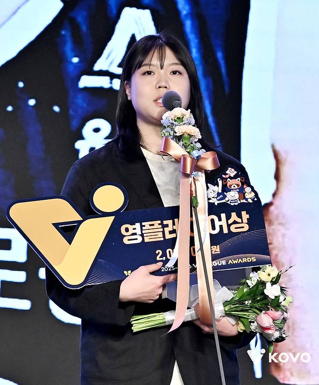 '이지윤 수상' 한국도로공사, 세 시즌 연속 신인상 수상자 배출...남자부는 삼성화재 이우진 선정 [V-시상식]