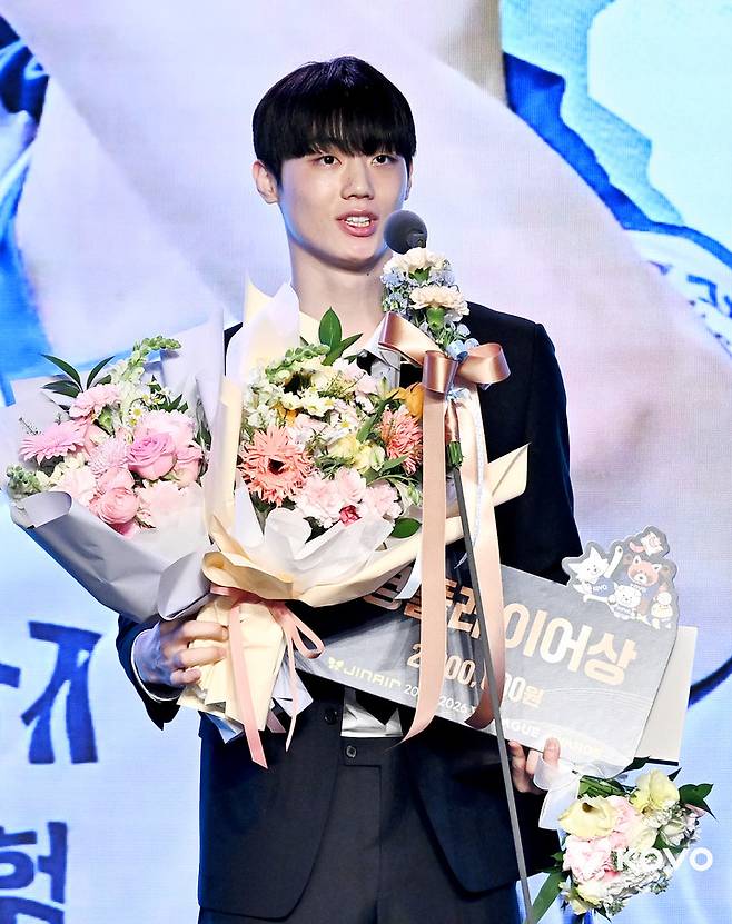 여자부 이지윤(한국도로공사)과 이우진(삼성화재)이 13일 오후 서울 광진구 그랜드 워커힐 비스타홀에서 열린 2025-26시즌 진에어 V-리그 시상식에서 영플레이어상을 수상했다.