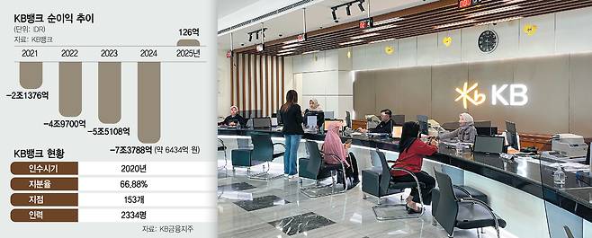이 같은 변화는 실적 개선으로 이어졌다. KB뱅크는 지난해 당기순이익 126억 4000만 루피아를 기록하며 인수 후 첫 흑자 전환에 성공했다. 싱가포르 최대 은행 DBS 출신 기업금융 전문가인 쿠나르디 다르마 리에 은행장은 “한국계 기업뿐 아니라 현지 대기업과의 거래 기반도 넓혀나가기 위해 노력 중”이라며 “KB뱅크가 처음으로 주관하는 신디케이트론 구성도 앞두고 있다”고 말했다.