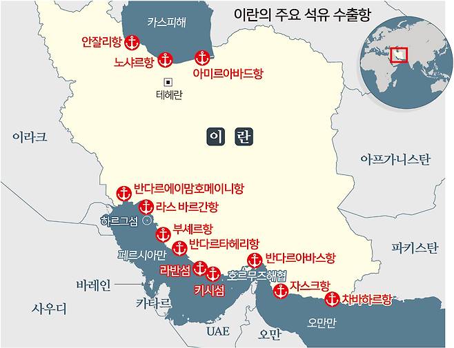 원유수출 항로 전면 차단 압박