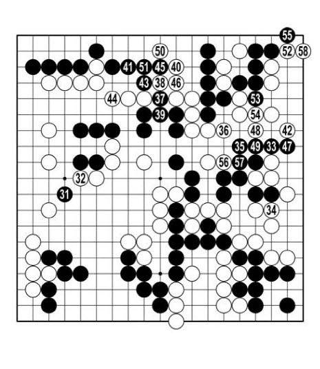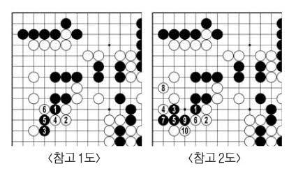 흑31이 대마를 살리는 데는 아무 쓸모가 없다. 그렇다고 달리 좋은 수가 없다. <참고 1도> 흑1로 움직여 3에 붙여도 백6에 끊는다. <참고 2도> 역시 흑 앞길엔 해가 나지 않는다. 백48·56을 두어 흑집이 날 만한 곳을 없애고 58에 내려 살았다. 세계 최강 신진서 대마가 두 집이 없다.
