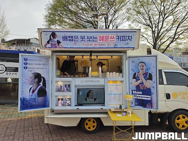 경기 전에는 또 하나의 시선을 끈 장면도 있었다. 배혜윤을 향한 커피차였다.