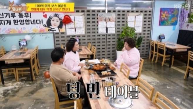 지난 12일 방송된 KBS 2TV '사장님 귀는 당나귀 귀'에서는 이순실과 코미디언 신기루가 만났다. 이날 이순실은 신기루를 자신의 식당으로 초대해 북한 음식을 대접해 기대를 모았다. 음식을 먹던 신기루는 "오픈 시간인데 왜 손님이 (없냐). 촬영 때문에 닫아 놓으신 거냐"며 한산한 매장 분위기에 의문을 드러냈다. 이에 이순실은 "아니"라며 "겨울이 되니까 손님이 없다. 다른 식당은 예약도 많고 줄 서서 기다린다는데 우리 집은 줄 설 필요도 없다"고 속상한 마음을 드러냈다.