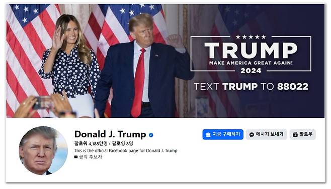 | ▲ 도널드 트럼프 미국 대통령 공식 페이스북 계정 |