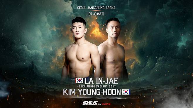 1부의 메인 이벤트는 ‘미들급 전 챔피언’ 라인재(40, 라이프짐)와 ‘수원 들소’ 김영훈(31, 김대환MMA)이 장식한다. 미들급 정상급 레슬링 실력을 가진 두 파이터이기에 치열한 레슬링 대결이 예상된다.
