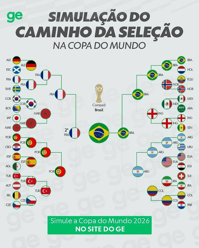 브라질 유력지 '글로부'는 최근 시뮬레이션을 돌려 2026 북중미 월드컵 토너먼트 대진과 최종 우승 팀을 예측했다.