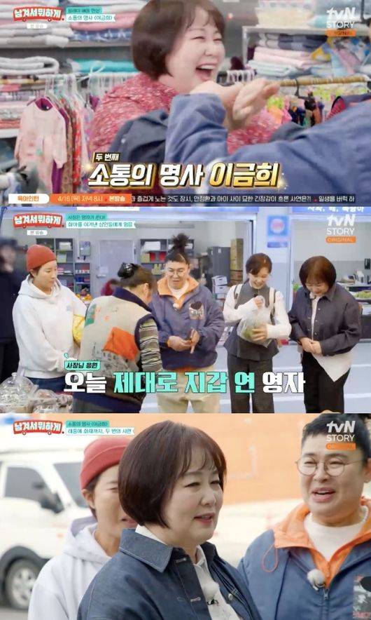 이날 이영자, 박세리는 이혼 전문 변호사 양소영과 함께 화재 사고가 있었던 영덕 전통시장을 찾았다. 이곳에서 이금희가 이들을 기다리고 있었다. 가게에 몰래 숨어 있던 이금희를 발견한 이들은 격하게 환영했다.