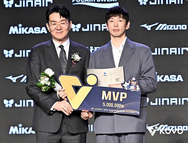 한선수는 13일 오후 서울 광진구 그랜드 워커힐 비스타홀에서 열린 2025-26시즌 진에어 V-리그 시상식에서 정규시즌 MVP를 수상했다.