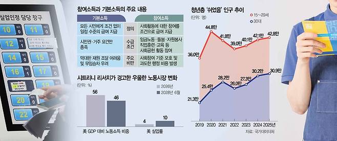김정식 연세대 경제학부 교수는 “활동이 가능한 사람에게 역할을 부여하고 보상하는 방식이 단순 현금 지급보다 낫다”면서도 “장애인 등 활동이 어려운 계층을 위한 별도의 소득 보전 장치가 필요하다”고 말했다.