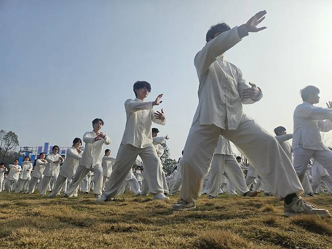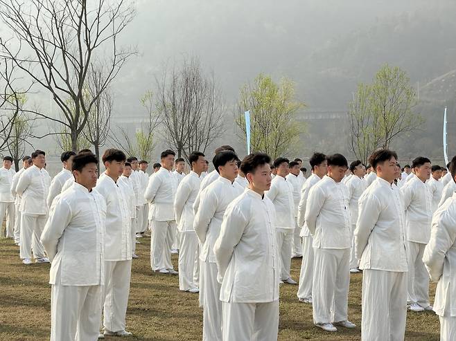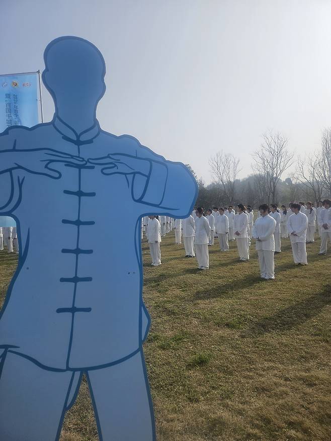 지난 달 21일 오전, 붉은 담장을 배경으로 늘어선 1000여 명의 하얀색 도복을 입은 무리들이 피지컬AI처럼 칼군무의 집단무를 선보였다. 태극권이다.