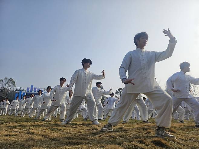 행사는 이원방송으로 세계 곳곳을 연결했다. 무대 중앙 대형 스크린에 2500년 전 무당산에서 발원한 도덕경의 철학과 태극권의 확장을 다룬 영상이 송출됐다. 상하이, 파리, 시드니 등지에서 일상복을 입고 태극권을 즐기는 이방인들이 글로벌 무술임을 역설하고 있다.
