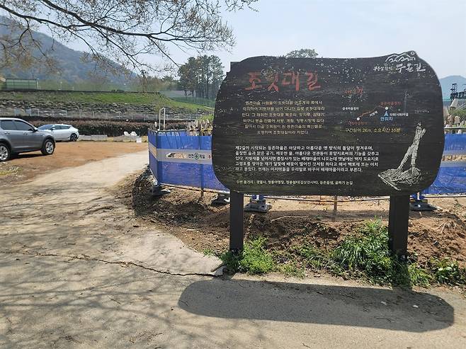| ▲ 등촌마 등촌마을 초입, 무돌길 조릿대길 안내판이 서 있는 자리. 산과 마을을 잇는 무돌길 2코스 길의 시작점 |