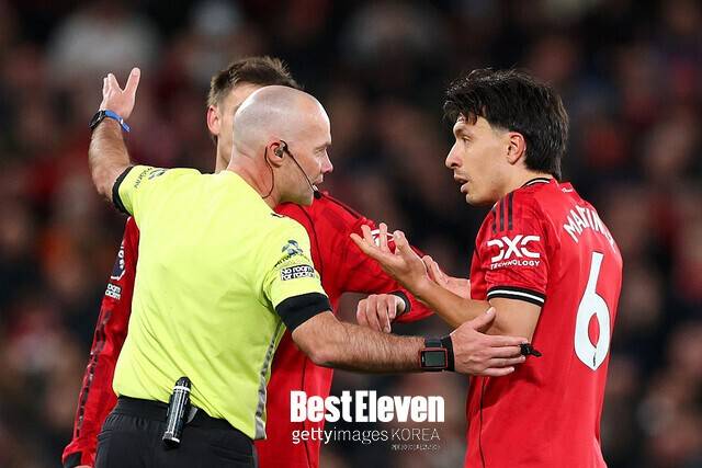 마이클 캐릭 맨체스터 유나이티드 감독이 상대 선수 머리카락을 잡아챘다는 이유로 리산드로 마르티네스에게 퇴장을 명령한 폴 티어니 심판을 강하게 비판했다.