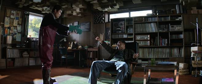 만수의 '맨 케이브'가 온실이었다면 범모에게는 음악감상실이다. 집안 곳곳이 범모 아내의 취향으로 꾸며졌지만, 음악감상실만큼은 다르다. 상장과 트로피가 소중히 진열돼 있고, 사진과 LP는 아날로그적 취향을 드러낸다.