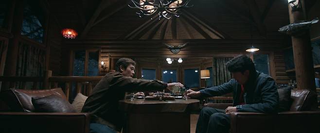 최선출은 제지 산업에서 여전히 잘나가는 인물이다. 그래서인지 그의 집은 산장처럼 통나무를 사용해 만들었다. 방금 전까지도 살아있던 것 같은 나무로 말이다. 천장과 바닥 그리고 테이블까지 온통 통나무다. 그런 그가 등장인물 중 가장 울창한 숲속에 사는 건 어찌 보면 당연하다. 마당으로 나와 나무를 태워 모닥불을 피운다. 역시나 그는 나무로 된 자원이 많다. 하지만 다른 등장인물과는 달리 가족 없이 홀로 사는 처지다.
