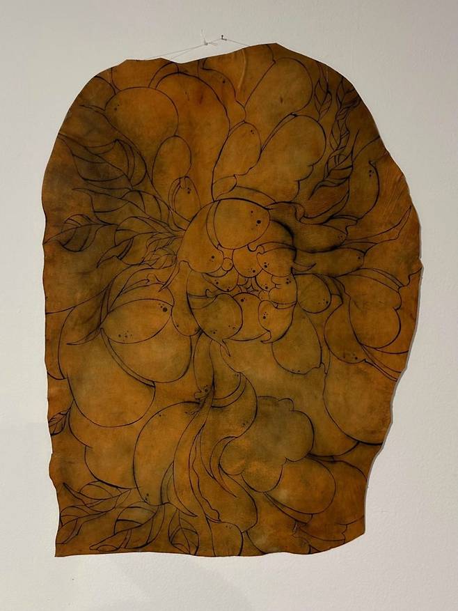 작가는 이미 생명을 다한 가죽 위에 바늘로 잉크를 새겨 넣는 '타투'를 통해, 죽은 물질에 새로운 서사를 부여한다. 이는 외부 자극에 쉽게 상처 입는 피부의 연약함과 한 번 새기면 지워지지 않는 영속성을 동시에 상징한다.