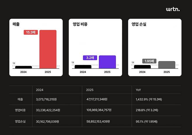다만 공격적인 투자로 인해 수익성 지표는 아직 마이너스다. 지난해 영업비용으로 약 1060억 원을 지출하면서 당기순손실은 약 581억 원을 기록했다. 특히 광고선전비에 294억 원, 플랫폼 운영을 위한 지급수수료에 611억 원을 투입했다. 회사 측은 "초기 플랫폼 투자와 사용자 확보 비용이 본격적인 순익 전환에 앞서 선행되는 자연스러운 과정"이라고 설명했다.