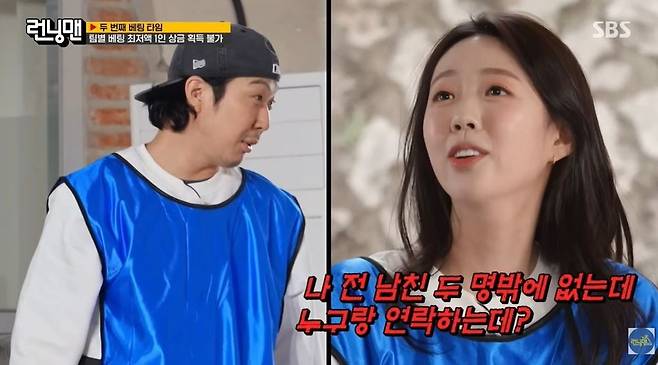 12일 SBS '런닝맨'에서 지예은이 하하, 지석진과 한 팀을 이뤄 미션을 진행하던 중 예상치 못한 '전 연인' 이야기가 등장했다.