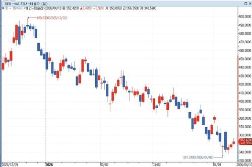 테슬라 주가는 연말 456달러에서 이달 7일 337달러까지 내린 바 있다.