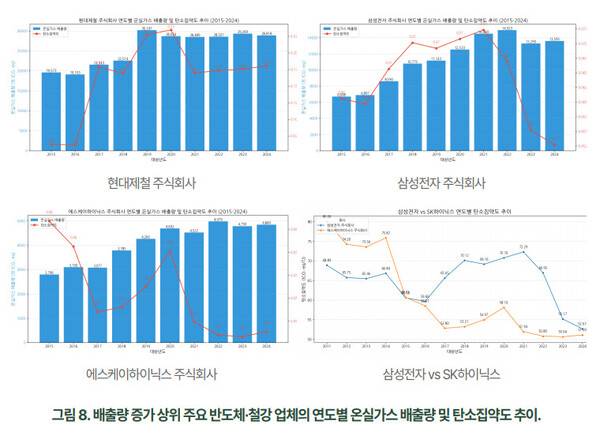 종합적으로 연구팀은 “우리나라 산업 부문의 배출량은 사실상 정체 상태이거나, 일부 업종에서는 오히려 증가했다”며 “이는 장기적인 기후위기 대응보다 단기 이익을 우선하는 기업의 관성과 산업 경쟁력 저하를 우려해 강한 규제를 주저하는 정부의 미온적 태도가 맞물린 결과”라고 지적했다.