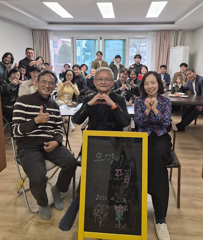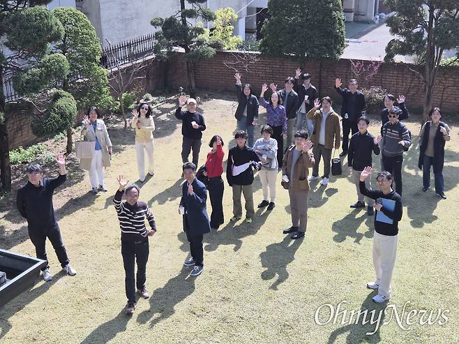 | ▲ 4월 오마이포럼 참가자들이 11일 오후 서울 마포구 서교동 오마이뉴스 마당집에서 기념촬영하고 있다. |