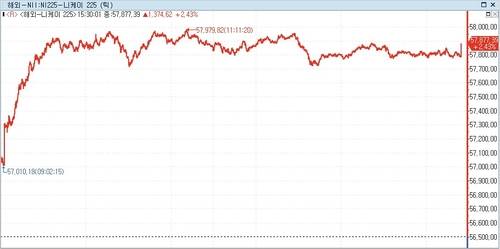 연합인포맥스 세계주가지수(6511)에 따르면 닛케이225지수는 전 거래일 대비 1,374.62포인트(2.43%) 상승한 57,877.39에 장을 마쳤다.