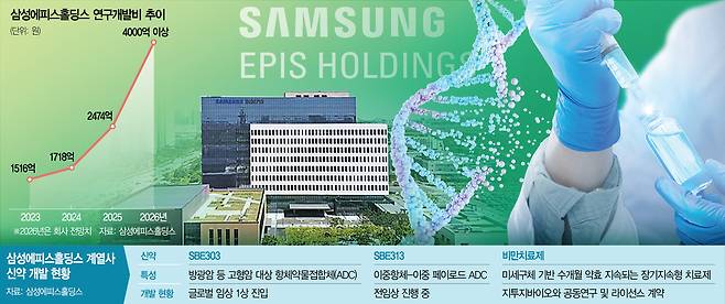 이에 삼성바이오에피스의 R&D 투자도 급격히 확대되고 있다. 지주사 삼성에피스홀딩스 공시에 따르면 회사의 연구개발비는 2023년 1516억 원, 2024년 1718억 원을 기록한 데 이어 지난해에는 2474억 원으로 전년 대비 44% 늘어났다. 삼성바이오에피스는 후속 바이오시밀러 및 신약 임상 진입 등에 따라 올해 연구개발비가 업계 최고 수준인 4000억 원 이상을 기록할 것으로 전망하고 있다. 삼성바이오에피스의 한 관계자는 “미국·유럽·한국에서의 바이오시밀러 3상 완화 및 간소화 제도가 경쟁력 있는 파이프라인 확대의 기회로 작용하고 있다”며 “바이오시밀러 개발 및 상업화 역량에 바이오텍 플랫폼 사업을 결합한 R&D 전략을 바탕으로 지속 가능한 성장을 도모할 것”이라고 말했다.