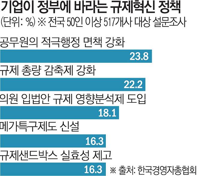공무원 면책·규제 총량 감축 요구 1·2위…집행 리스크 해소 우선