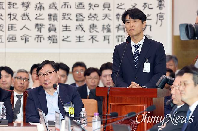 | ▲ 증언대에 선 방용철 전 쌍방울그룹 부회장 방용철 전 쌍방울그룹 부회장이 14일 서울 여의도 국회에서 열린 '윤석열 정권 정치검찰 조작기소 의혹 사건 진상규명 국정조사'에 증인으로 출석해 답변하고 있다. |