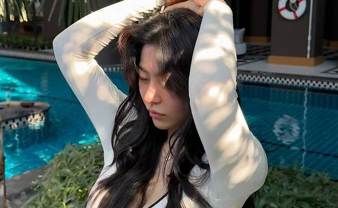 노슬비는 13일 자신의 개인 계정을 통해 "저 포토샵 안 했어요"라며 여러 장의 사진을 업로드했다. 공개된 사진 속 노슬비는 화이트 컬러의 래시가드를 입고 수영장 물가에 앉아 포즈를 취하고 있다. 군살 하나 없는 매끈한 팔라인과 탄탄한 몸매가 시선을 사로잡는다.