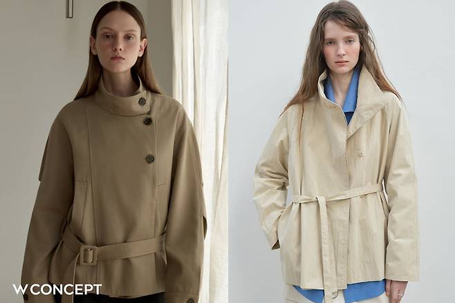 단순히 길이만 줄이는 데 그치지 않고 목선을 높게 올린 ‘하이넥’ 디자인이나 허리 라인을 강조하는 벨트 디테일이 더해지며 제품군이 다양해지는 추세다. W컨셉에서도 르와 벨티드 숏 트렌치 자켓, 더라우스트 하이넥 하프 트렌치, 그노노이 하프 트렌치코트 등 상품이 인기를 끌고 있다.