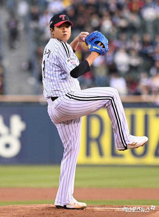 첫 이닝 송승기는 수비의 도움 속에 아웃카운트를 적립했다. 1회 황성빈과 빅터 레이예스가 각각 유격수 오지환의 좋은 수비 속에 땅볼로 아웃됐다. 이어 전준우까지 중견수 뜬공으로 물러나면서 송승기는 1회 삼자범퇴 이닝을 만들었다.