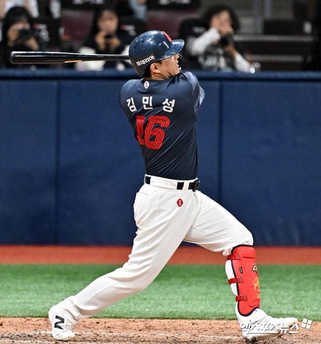 여기서 롯데는 전민재 타석에서 대타 노진혁을 투입했다. 그리고 노진혁은 우강훈의 초구 152km/h 패스트볼을 받아쳐 중견수 앞 안타를 때려냈다. 3루 주자 한태양이 득점을 올리며 롯데는 마침내 동점을 만들었다.