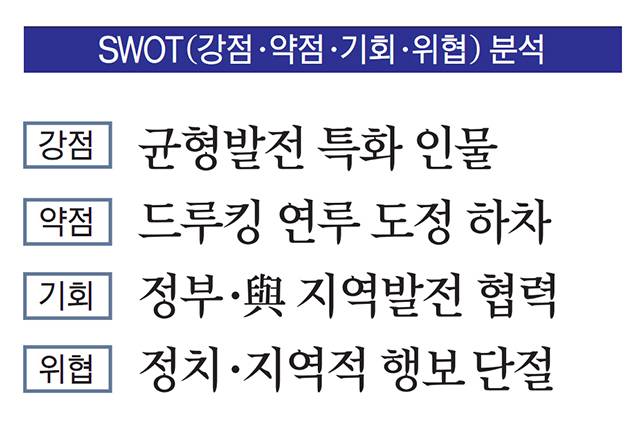 지난 2018년 지방선거에 당선돼 제37대 경남도지사를 지낸 데다 이재명 정부의 첫 대통령 직속 지방시대위원장을 맡으면서 '균형발전'이라는 과제를 실질적으로 수행해 온 것은 향후 경남의 균형발전 정책을 위한 강점으로 작용할 수 있다.